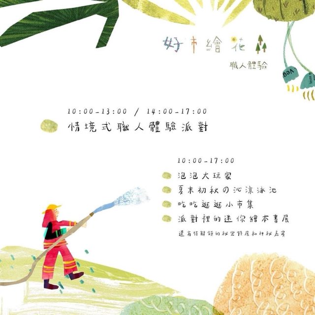 玩法: 10點入場,先玩場邊的泡泡、泳池、逛小市集、書展等, 14:00點再到職
