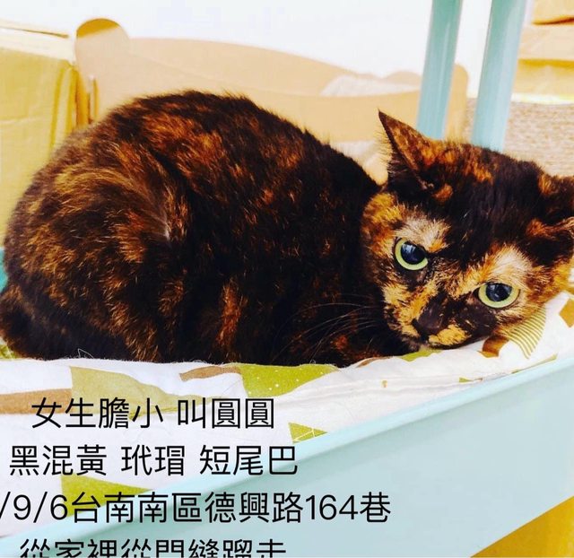 2024/9/6傍晚從門縫蹓走,家人沒注意到,個性膽小怕生,名叫圓圓,已結紮女生玳瑁。