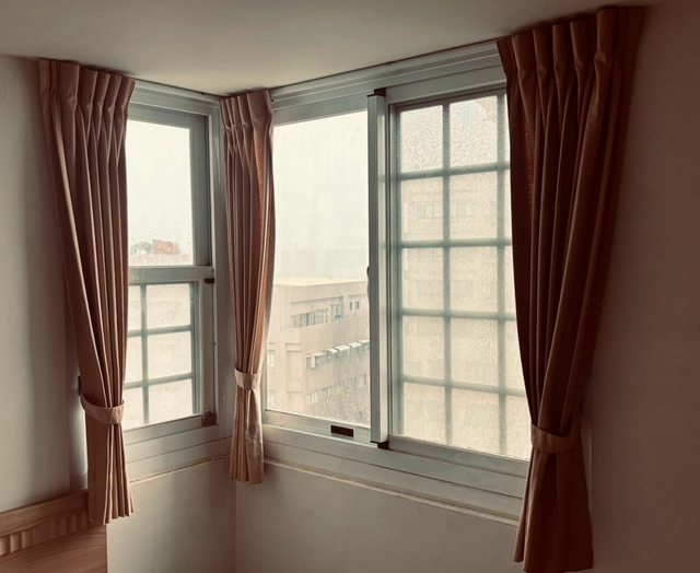 總共有兩扇窗。棉麻材質。
