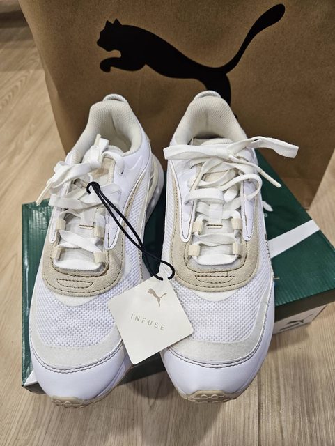 這雙偏米白,全新無穿過,但放在鞋盒裡從年初到現在,剛剛打開看,覺得鞋頭網處及後