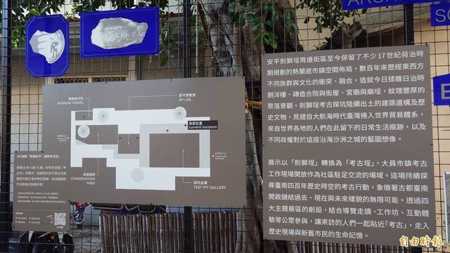 「考古埕」空間解說牌說明現址遺構。(記者洪瑞琴攝)