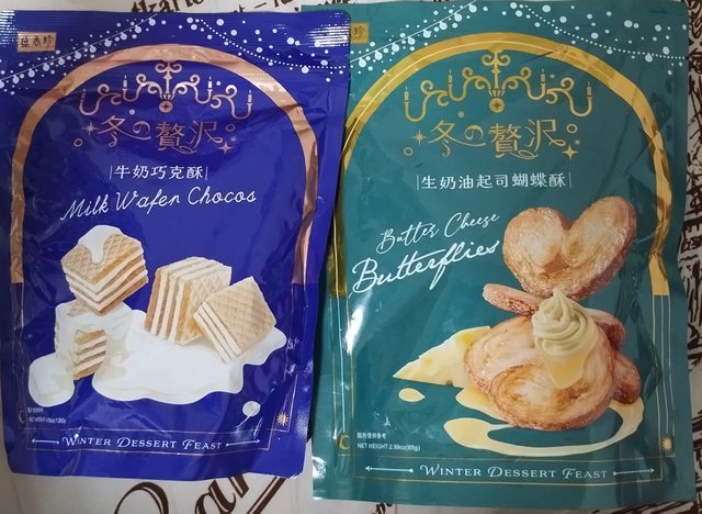 3. 盛香珍,牛奶巧克酥有20包,生奶油起司蝴蝶酥有20包,一包40元,4包150元,11包4