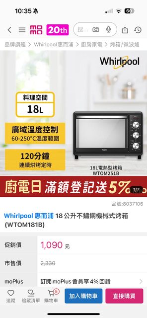 標題[交易] 惠而浦18公升烤箱