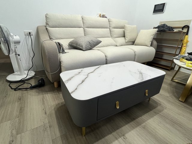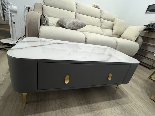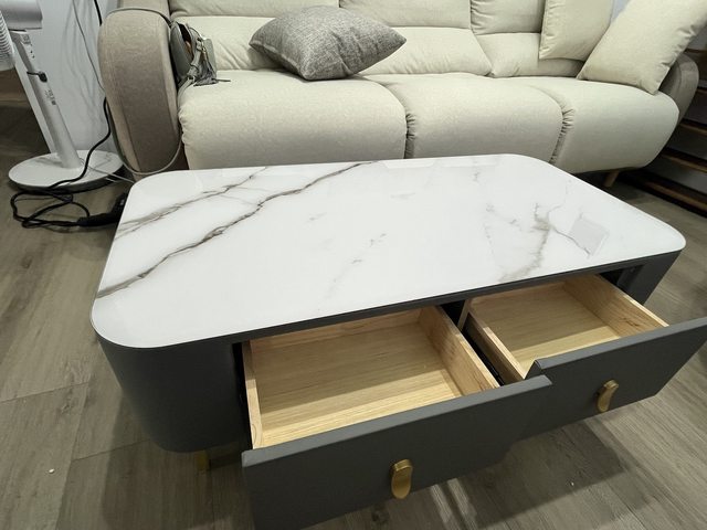 全新100*50*高40鋼化玻璃岩紋抽屜茶几