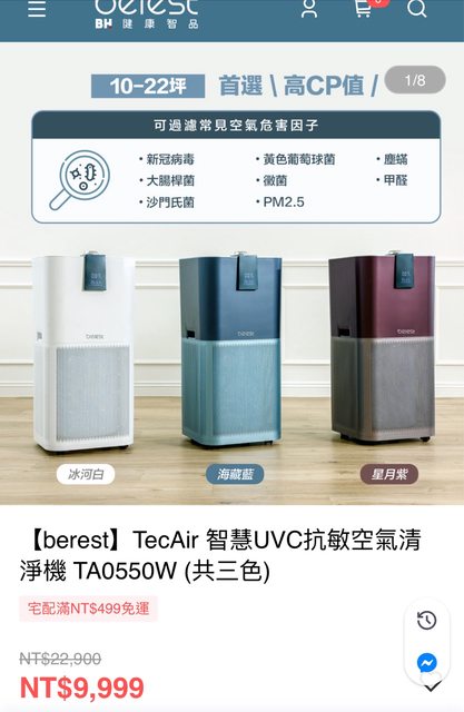 交易物品: TecAir 智慧UVC抗敏空氣清淨機