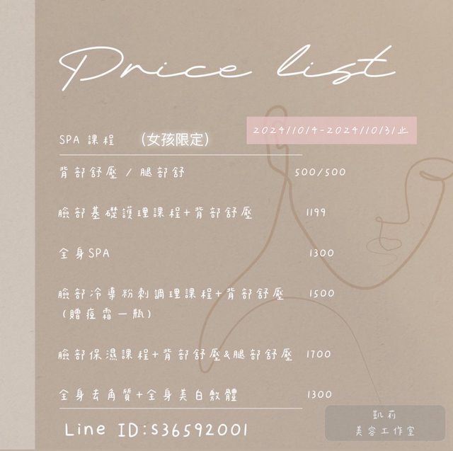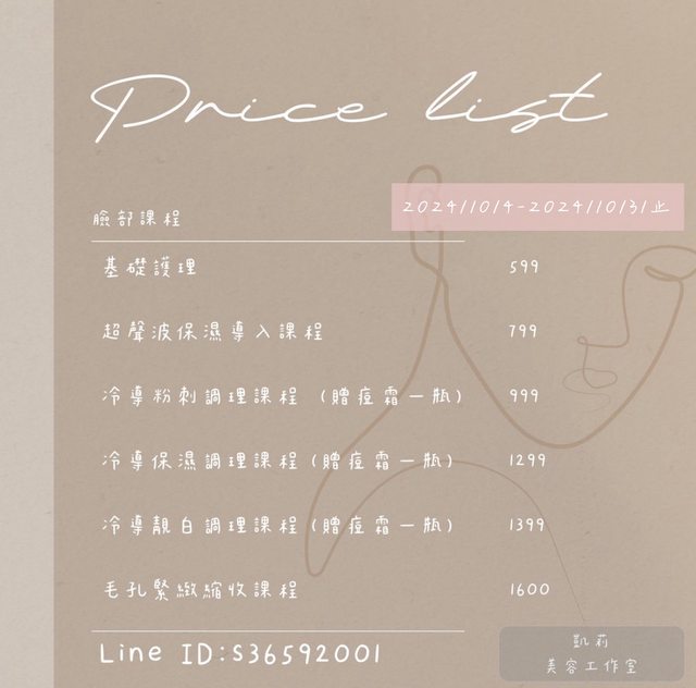 以上均包含卸妝洗臉、去角質、臉部按摩、粉刺深層清理、敷臉