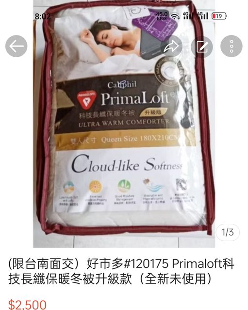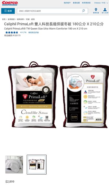 標題[交易] 好市多被子, Primaloft保暖長纖冬被