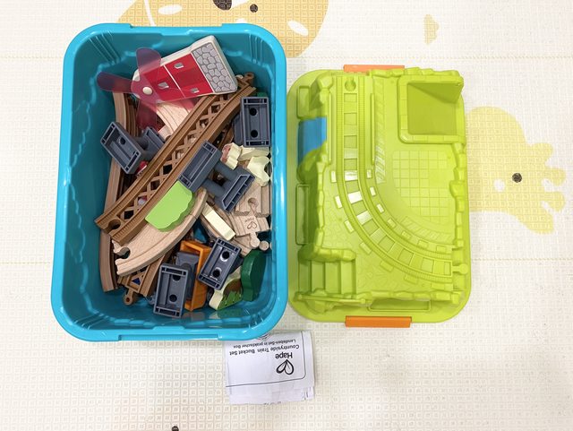 標題[交易] TOMICA收納桶 HAPE軌道組 MOOMU軟積木