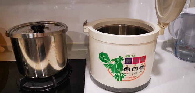 鍋子先在瓦斯爐煮滾後放進悶燒鍋中,不用插電