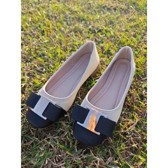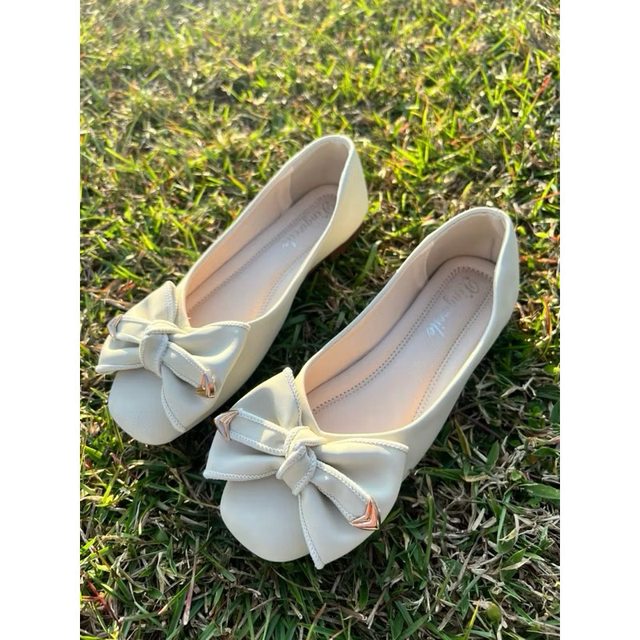 100$,米色蝴蝶結平底鞋 35碼