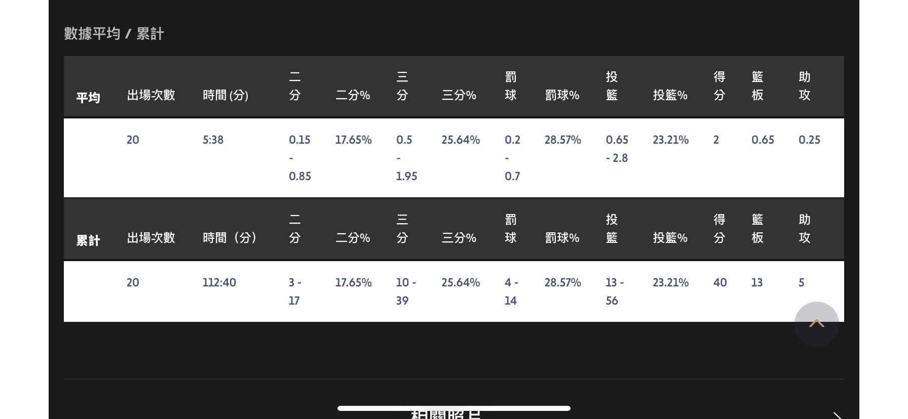 → virnux : 他這數據是超級屌耶 有些球員這三項裡光是罰球就超 07/27 23:19