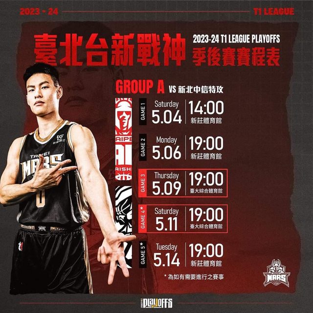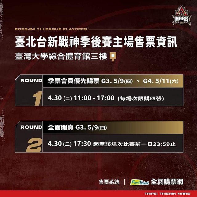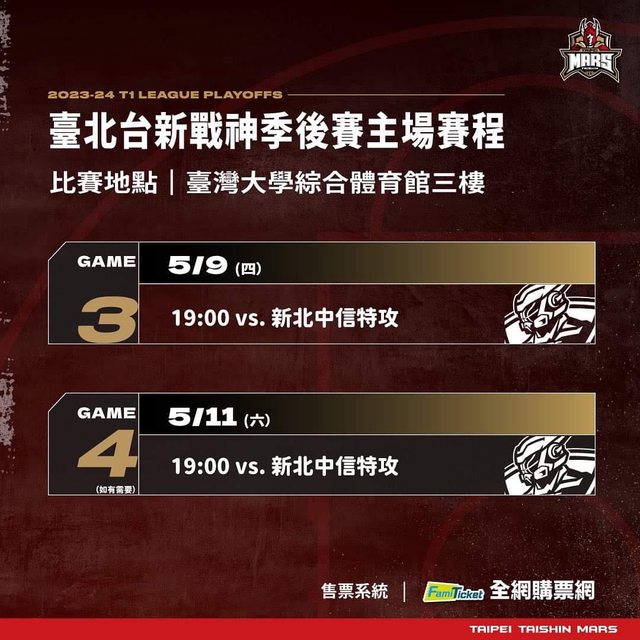 臺北台新戰神季後賽主場賽程| vs 新北中信特攻