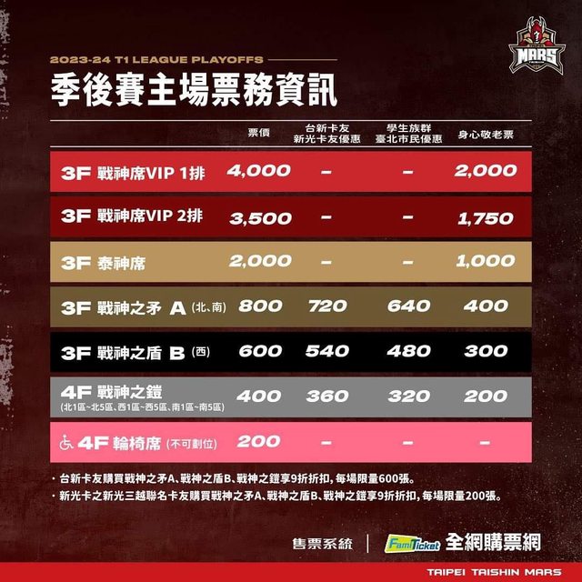 標題[情報] 臺北戰神 - 季後賽售票資訊