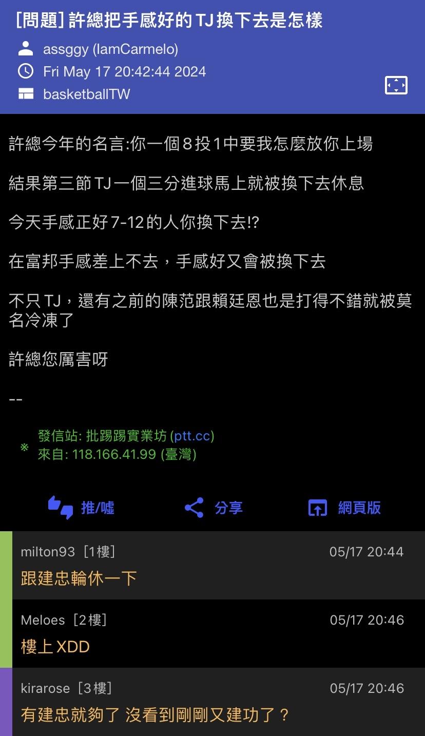 推 belili : 許總本季會把狀況好的放下去坐板凳很搞 但豪弟也很 05/19 00:26