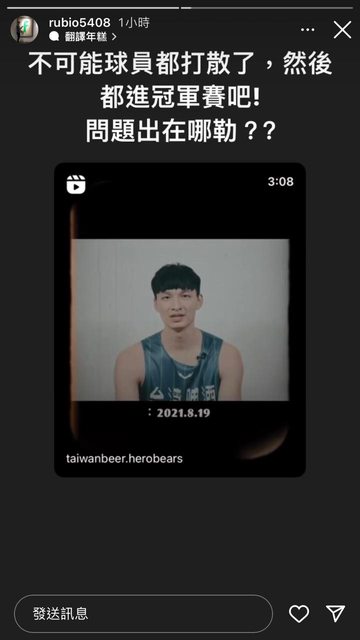 : 分享了台啤英熊IG的影片至限時動態表示「不可能球員都打散了,然後都進冠軍賽吧!問
