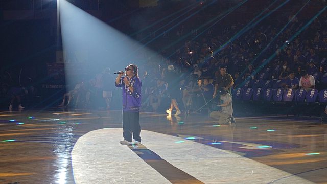 這位子也只能拍這角度了 後來中間休息時間根本也看不到表演 都被站起來的球員們擋住