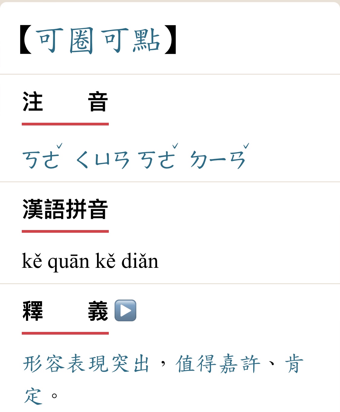→ jokerlin7026: 可圈可點,不就是給予肯定的意思,做得比之前好了 05/29 22:01