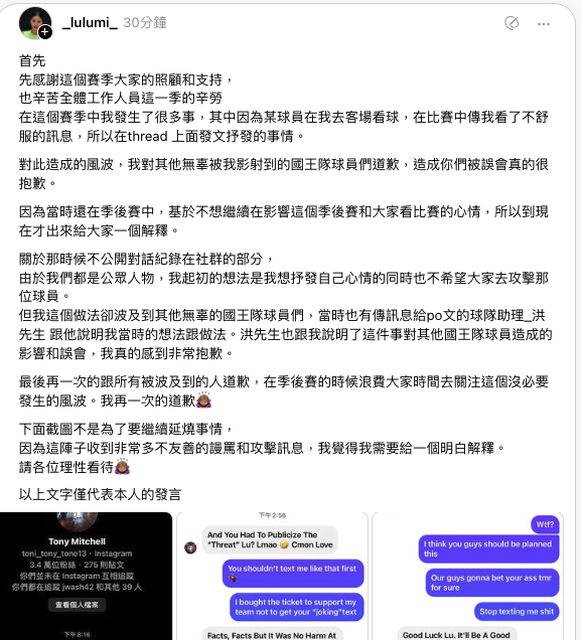 噓 JameerNe1son: 可憐哪,被球員私訊騷擾還要被抹黑成想紅,難怪台籃 06/04 15:31