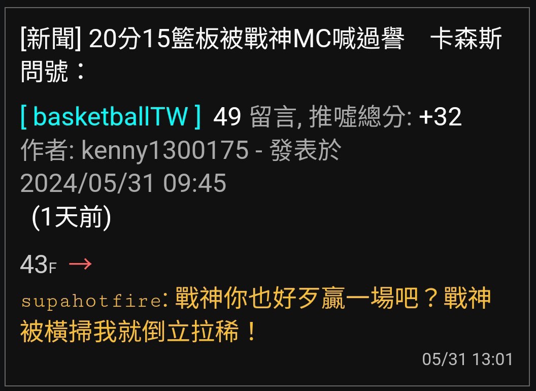 → Geison : 中信G3 72、戰神G4 71分,雲豹去年單節9分過,還有 06/12 22:45