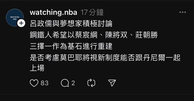 推 assbean : 鋼鐵人剩下2個球員怎麼併 何況獵鷹已經有白薩也沒 06/30 18:41