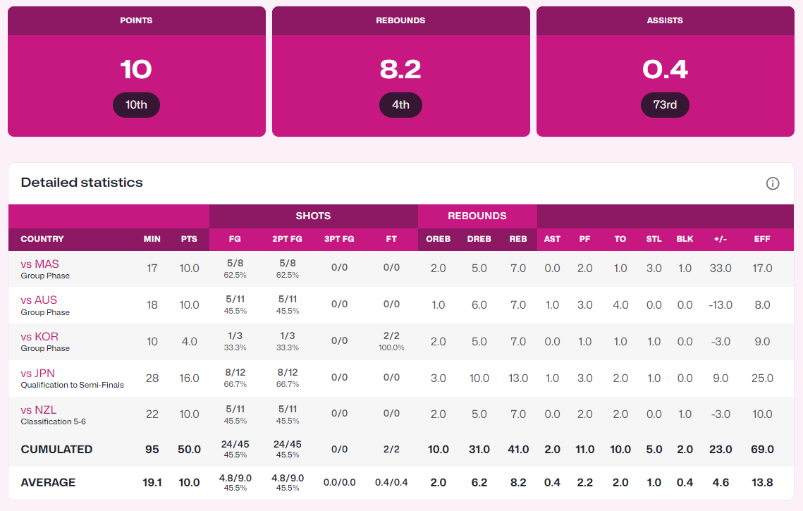 推 ntuwalker : 徐培琳的數據很均衡,場均9.4分5板2.4助,罰球命中 06/30 22:07