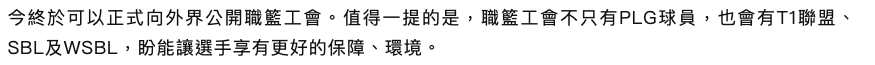 推 lovebuley : 工會本來就有把SBL WSBL納入 WSBL也有球員加入工會 07/05 10:44