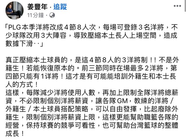 推 liga504123 : 限制洋將四節4人次、洋將+三類四節8人次更好 07/05 11:30