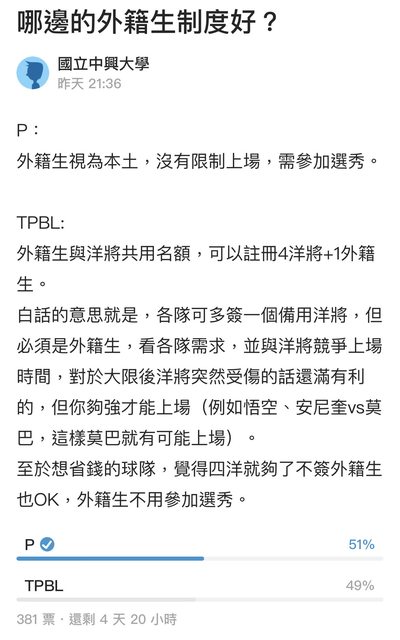 → kentin : 多給本土一點機會跟上場時間了,外籍生來台灣打球 07/12 08:34