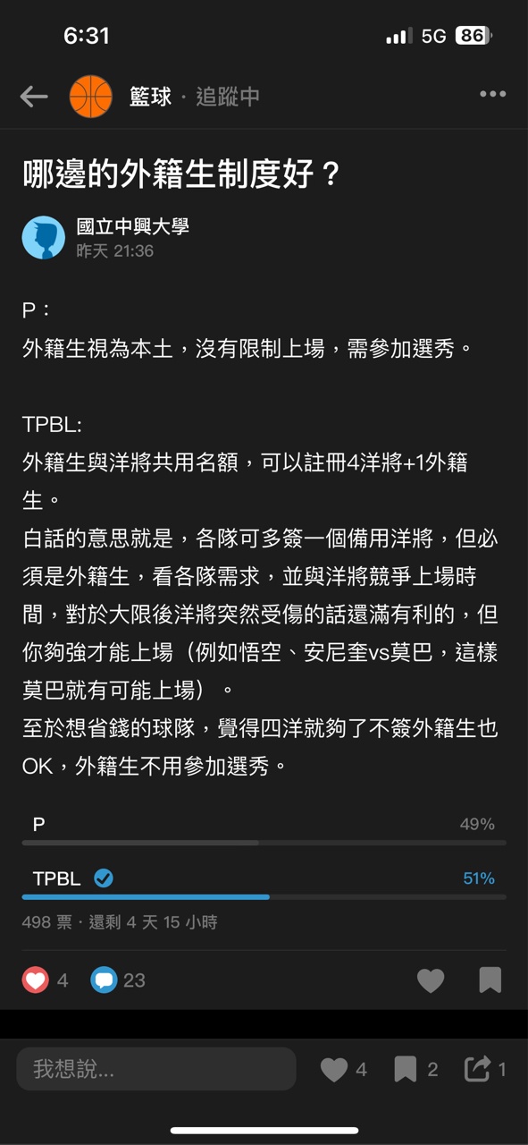 → kuanju : 曾于豪等(比較弱的本土)跟本土競爭上場時間,合理=. 07/12 09:39
