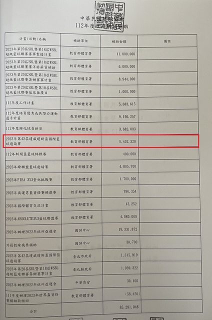 → bobwalkerkao: 去年瓊斯盃補助 除了體育署540萬還有北市府131萬 07/16 16:36