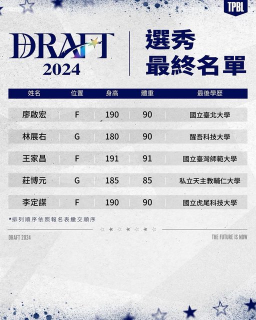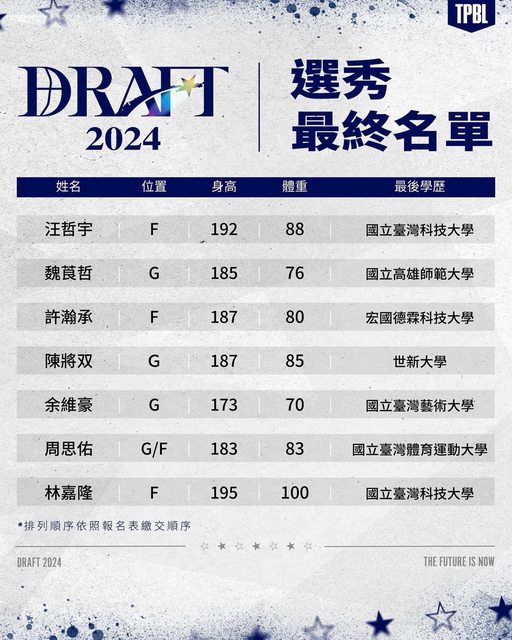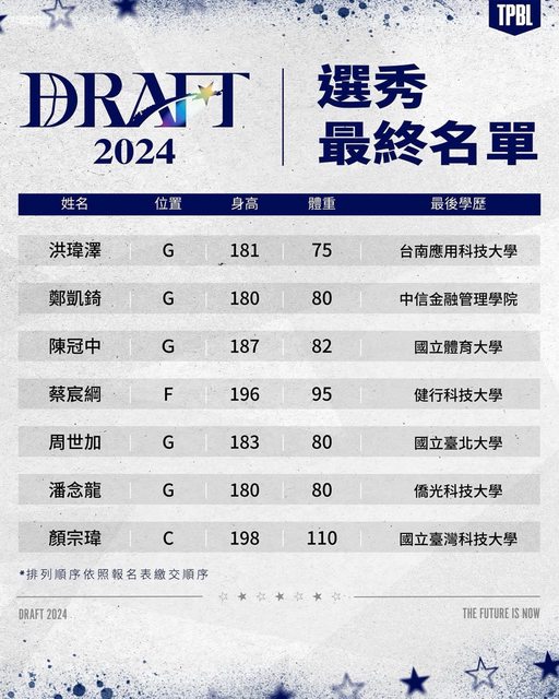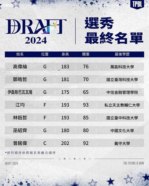 → brandon0415 : 扣除準備CBA的陳將双、蔡晨鋼、魏莨哲、陳冠中。狀 07/16 16:29