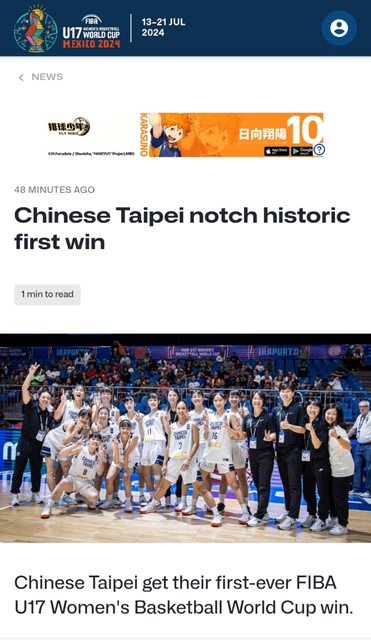 中華台北隊獲得了FIBA U17女籃世界盃的首場勝利。
