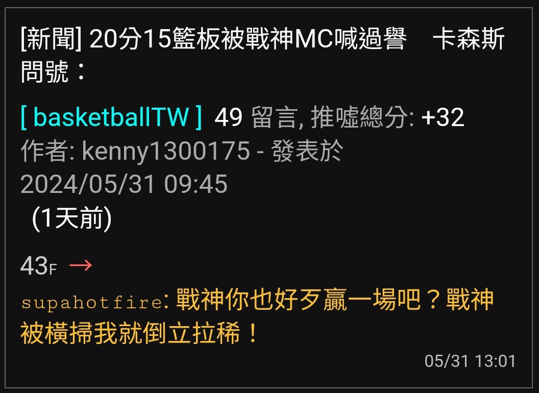 推 nash100 : 中信會被戰神輾過去 除非後續還有補很強的選手 08/02 15:45