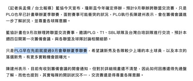 → Jimstronger : 法辦瓊斯盃就改辦跨聯盟比賽,PLG就一直不想打,說 08/08 18:02