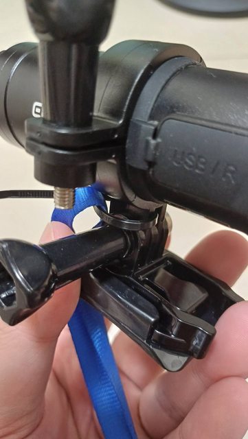 還用束帶跟證件夾的帶子做安全索,下端可以固定在安全帽上。