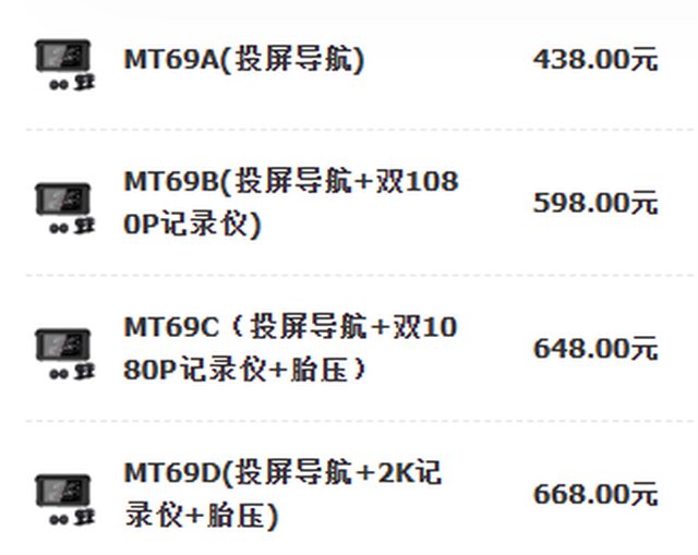 純螢幕RMB$438 1080p$598 1080p+胎壓$648 2k+胎壓$668