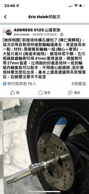: 換好之後覺得前輪轉起來很緊,於是就把輪軸放鬆一點