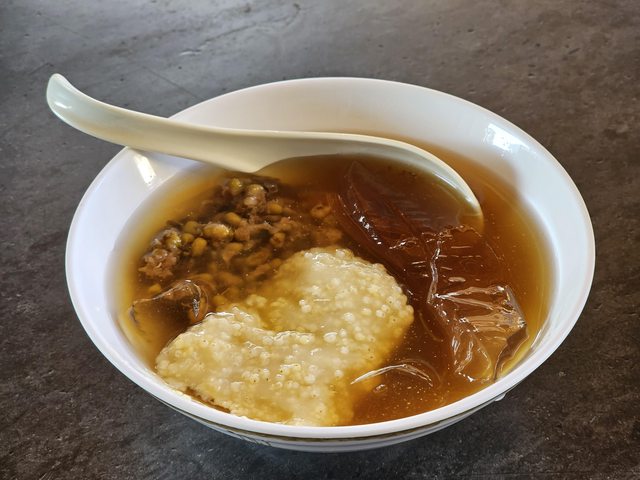 錯,就是跟綠豆的味道有點不搭嘎;湯是湯、綠豆是綠豆,分開都沒問題,放在一起就沒