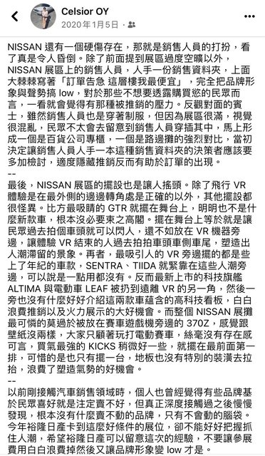 : 然後我家裡的人也在,居然就聽那個業代開始表演,什麼Nissan比Toyota還要好,價錢?
