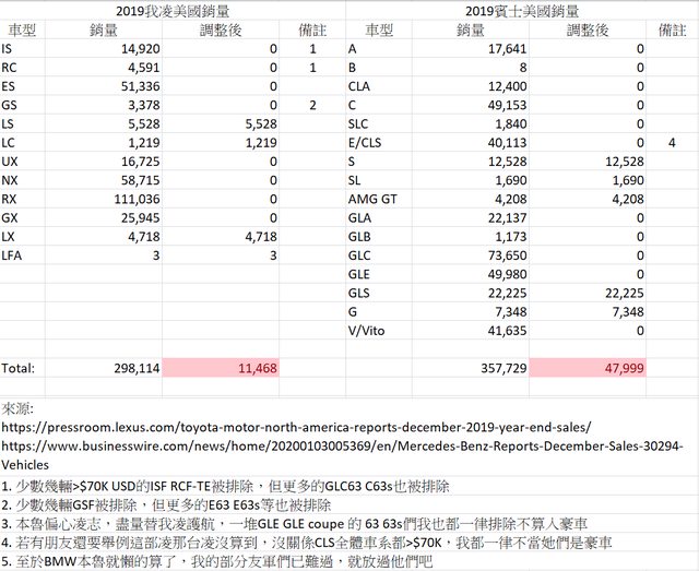 2019時本魯已替大家對美國賓士vs凌志銷售做過一次很偏袒凌志的分析,在此拋磚引玉: