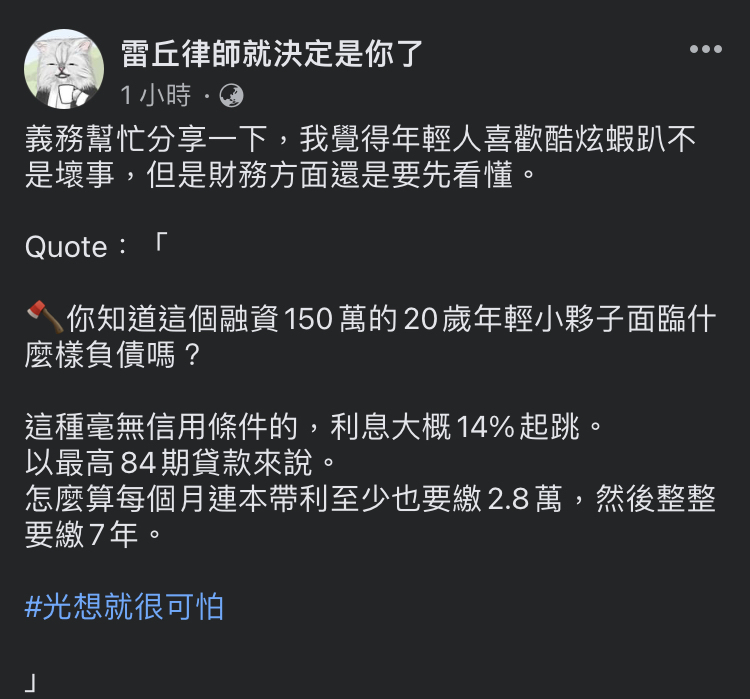 推 a36464 : 那個貼圖的謙澤貸款應該是地下錢莊,兼差賣二手車, 07/30 10:39