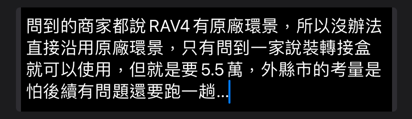 推 qmaper : 有出RAV4專用的不用轉接 多問幾家店家吧 08/05 03:42