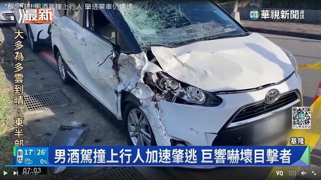 轄區警方獲報到場時,卻發現肇事車輛早已逃逸無蹤,調閱監視器後,循線在碧砂漁港停車場內尋獲肇事車輛,發現肇事車輛擋風玻璃碎裂、照後鏡、葉子板等處凹陷,駕駛則早已逃之夭夭。