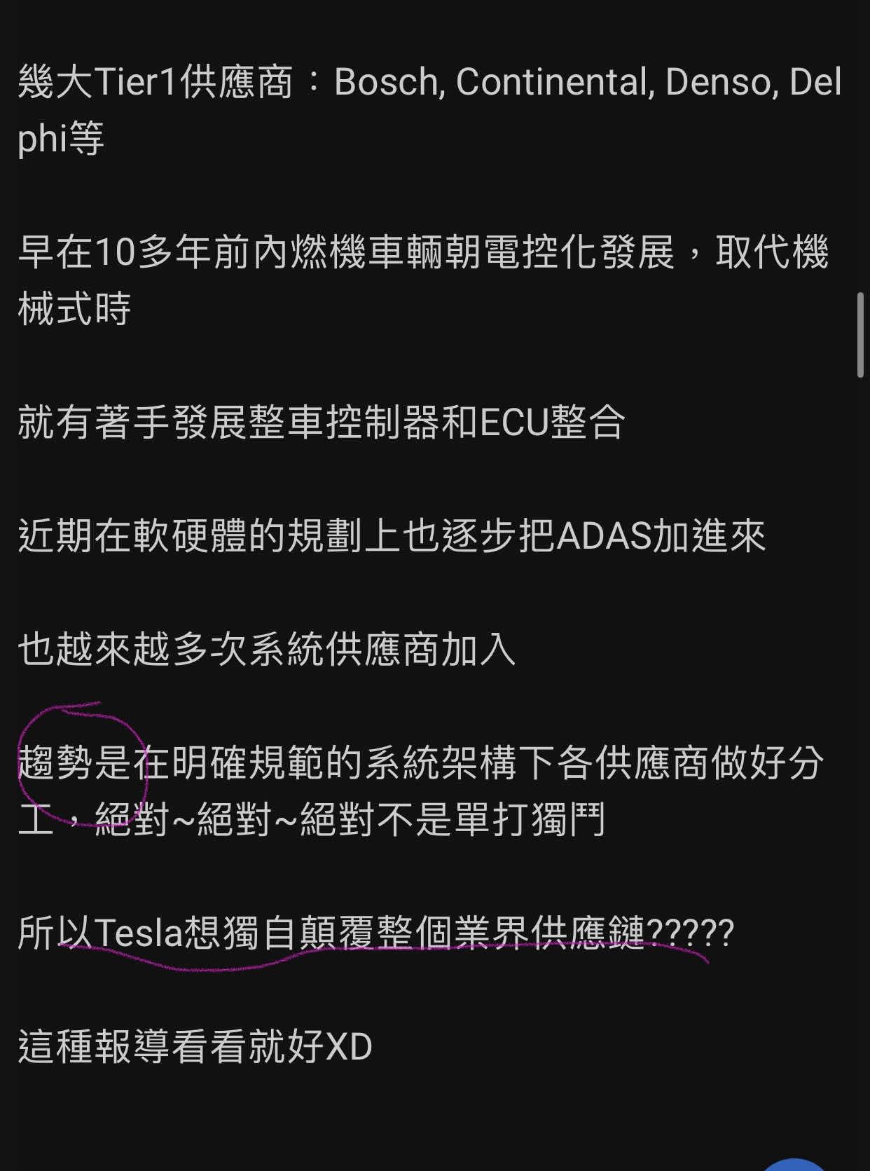 推 bhc : 很難想像大車廠對供應鏈無法要求,而且軟體開發跟 08/07 10:43