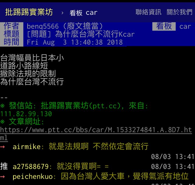 推 kingfly : 人家KCAR一台才幾十萬 08/23 14:21