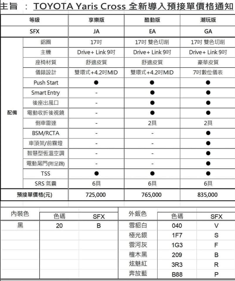 JOHN2188 : 反觀YARIS CROSS那個72.5配備真是爛XD 08/24 00:45