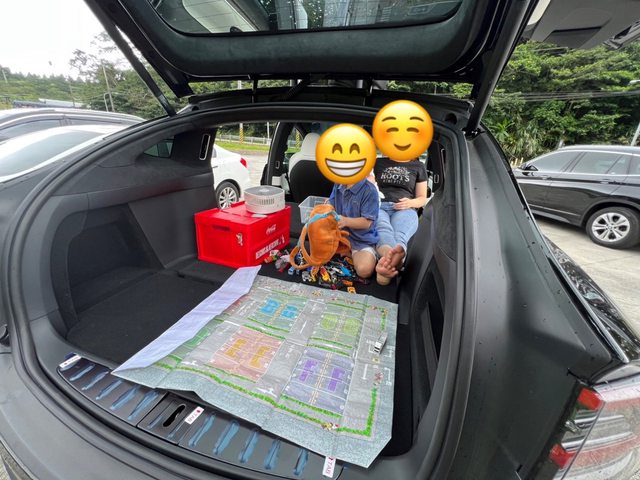 真的是很能裝! 我們在前行李箱塞了4個稍微消氣的兒童游泳圈跟一堆換洗衣物