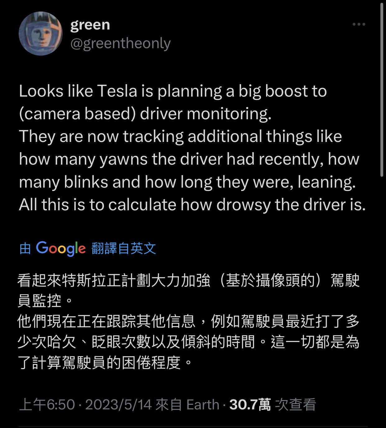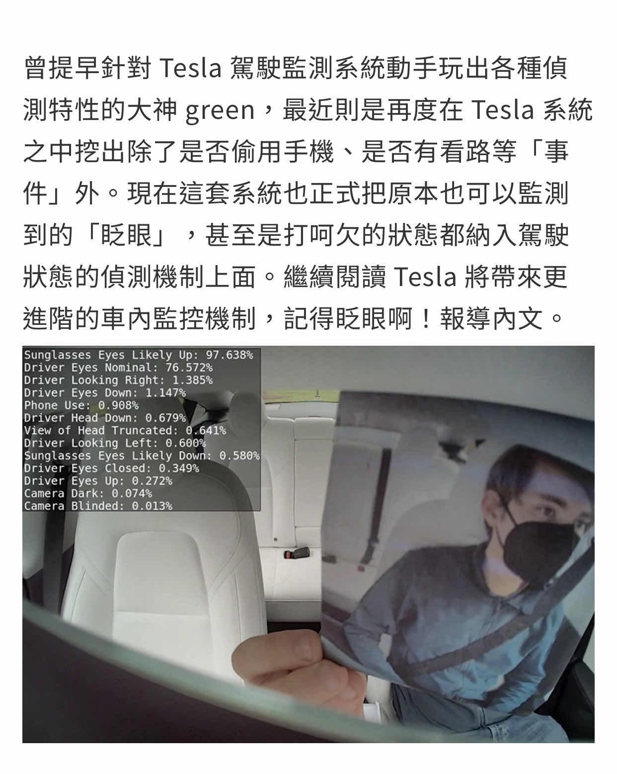 a1280547 : 美國FSD BETA才有的功能 你在那邊監控眼球? 08/31 15:31