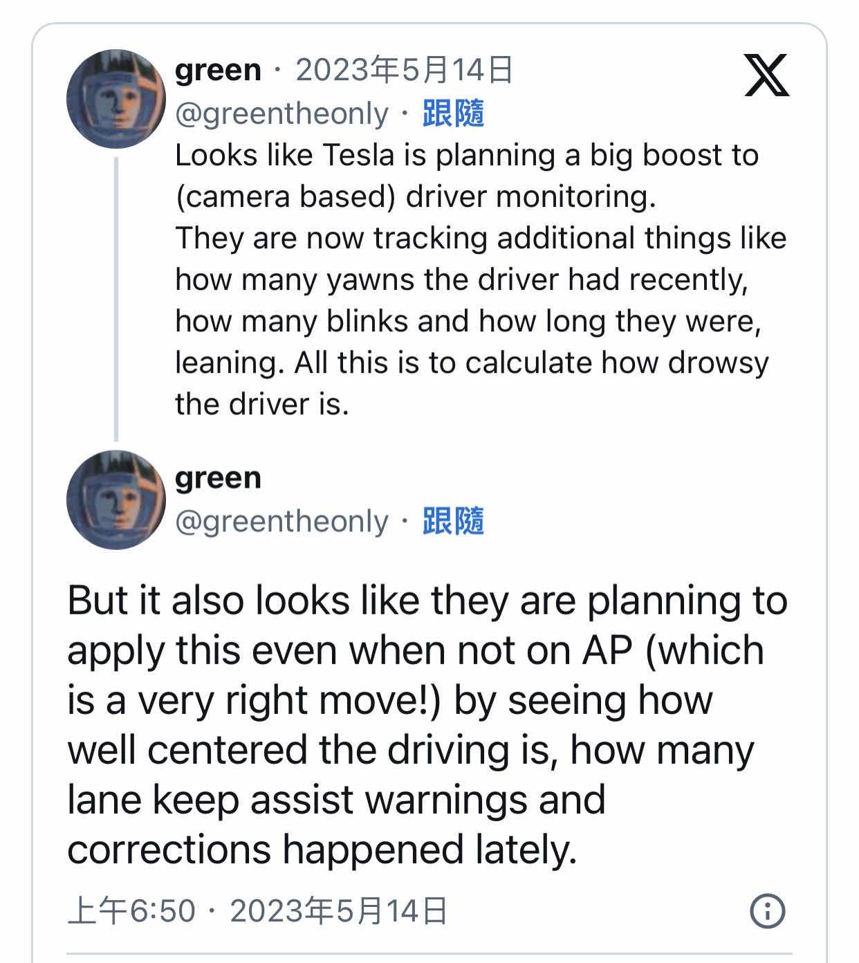 Killercat : 那是FSD Beta/想要參加FSD Beta的車主OptIn才會監控 08/31 13:25