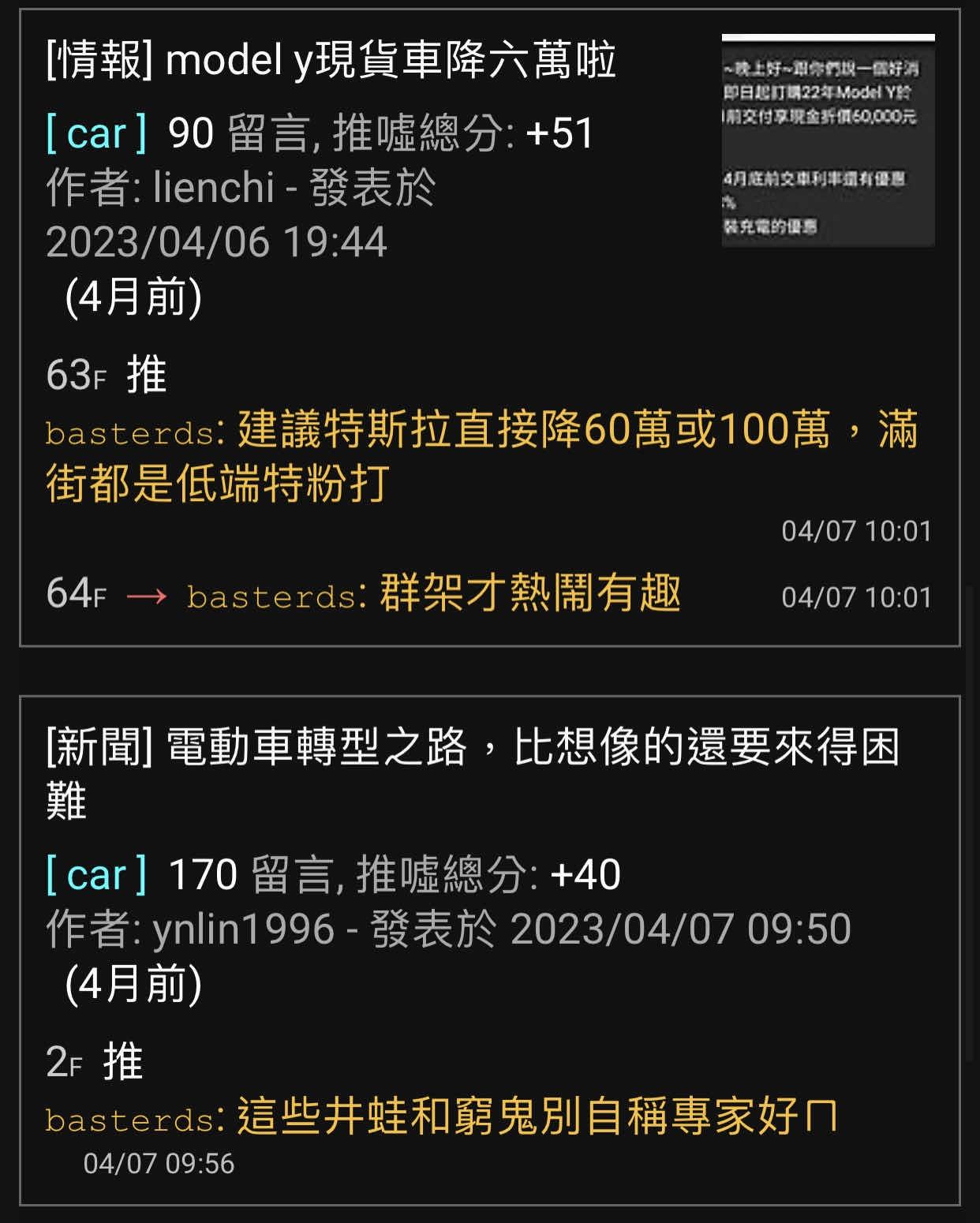 yumeixuan : 不是厭惡特斯拉 而是厭惡這些電車猴子好嗎 09/01 14:56